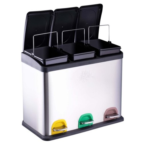 Moderní pedálový koš se třemi samostatnými nádobami o objemu 15 litrů, které usnadňují separaci plastů, papíru a dalších materiálů. Díky nožnímu pedálu otevřete víko bez použití rukou a mechanismus soft-close zajistí tihé a plynulé zavírání s omezením zápachu.