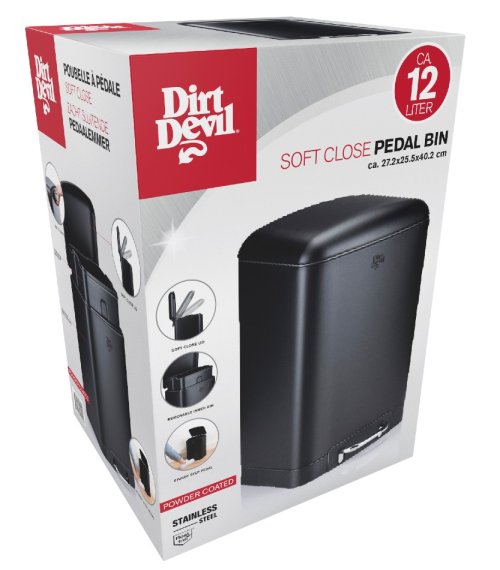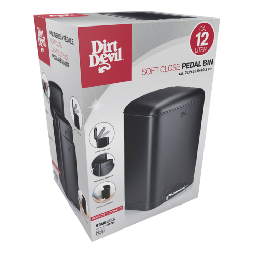 Neházejte své odpadky jen tak někam, dejte je do tohoto prostorného pedálového koše Dirt Devil o objemu 12 litrů. Kbelík vyrobený z odolné černé nerezové oceli se perfektně hodí téměř do každého interiéru a je vhodný pro použití v kuchyni, koupelně nebo kanceláři. Díky praktickému nožnímu pedálu ve spodní části kbelíku otevřete víko, aniž byste se ho dotkli. Pedálový koš je také vybaven mechanismem soft-close, díky kterému je otevírání a zavírání víka nehlučné a zabraňuje úniku nepříjemných pachů z koše. Robustní černá nádoba z nerezové oceli odolá každodennímu používání a snadno se čistí. Vyprazdňování pedálových košů je velmi jednoduché: vyjměte vnitřní koš, zlikvidujte odpad a znovu vložte vnitřní koš.