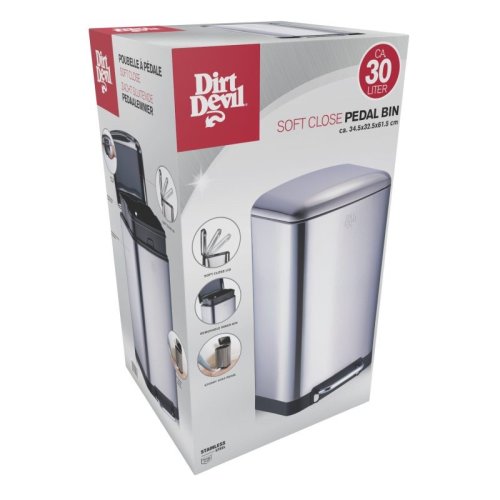 Prostorný koš, který je zároveň stylový? Toto je 30litrový pedálový koš od Dirt Devil. S kapacitou až 30 litrů se do kbelíku vejde dostatek odpadu, aby nebyl neustále přeplňován. Díky soft-close mechanismu pedálového koše se víko zavírá poměrně tiše a také zabraňuje pachům šířícím se z koše. Tělo odpadkového koše pedálů je vyrobeno z nerezové oceli. Jedná se o odolný materiál, který se snadno čistí. Koš má nožní pedál pro otevření víka. To znamená, že to nemusíte dělat rukama a máte vždy volné ruce na přenášení odpadu do pedálového koše. Stručně řečeno: Tento koš s neuvěřitelnou kapacitou 30 litrů je ideální pro organizování a ukládání vašeho domácího odpadu.