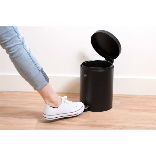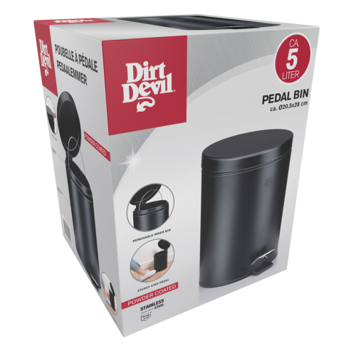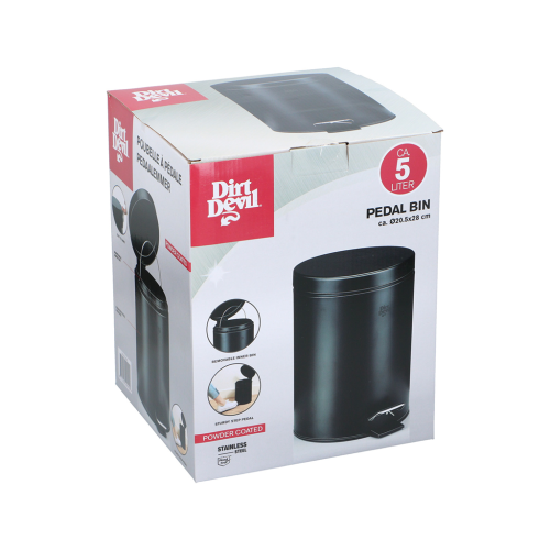 Tento kompaktní 5litrový pedálový odpadkový koš od Dirt Devil je praktickým doplňkem do vaší koupelny nebo toalety. Ideální pro uložení vložek, tamponů, plen nebo jiných materiálů, které by se neměly splachovat do záchodu. Malá nádoba o objemu 5 litrů usnadňuje výměnu této malé nádoby a udržuje ji déle čistou. Šlapací koš má vyjímatelné plastové vnitřní vědro, do kterého můžete zavěsit malý pytel na odpadky. Umístění sáčku na odpadky do vnitřního koše a sklopení vyčnívající části na vnější straně koše bude vypadat elegantně a udrží sáček na odpadky déle čistý. Když je odpadkový pytel plný, můžete vnitřní koš snadno vyjmout pomocí kovové rukojeti. Jak název napovídá, tento malý odpadkový koš otevřete stisknutím pedálu nohou, takže se nemusíte ohýbat. To je zvláště praktické, protože nádoba je velmi malá a skladná a je určena pro drobný odpad. Pedálový koš má také kovovou smyčku na zadní straně, která vám umožní jej zvednout, aniž byste se dotkli samotného kbelíku.