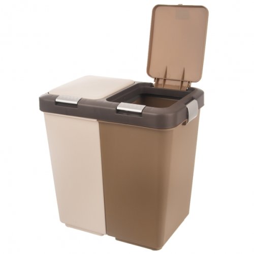 Odpadkový koš DUO na třídění odpadu s otvíráním pomocí klipu na víku Dva samostatné koše spojené plastovou obručí Vhodné na třídění odpadu Materiál: plast PP Rozměry: 34 x 27 x 50 cm Objem 2x20 l (40 …