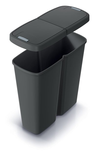 Odpadkový koš Prosperplast COMPACTA Q DUO se skládá z jedné velké vnitřní nádoby. Přesto vám usnadní třídění odpadu u vás doma i v kanceláři. Je totiž vybavený dvojitým víkem s tlačítkovým otevíráním, na které můžete uchytit jeden nebo rovnou dva odpadkové pytle. Do jednoho z nich vyhazujete například smíšený odpad, do druhého plast nebo třeba papír.