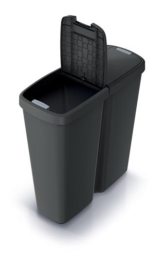Odpadkový koš Prosperplast COMPACTA Q DUO se skládá z jedné velké vnitřní nádoby. Přesto vám usnadní třídění odpadu u vás doma i v kanceláři. Je totiž vybavený dvojitým víkem s tlačítkovým otevíráním, na které můžete uchytit jeden nebo rovnou dva odpadkové pytle. Do jednoho z nich vyhazujete například smíšený odpad, do druhého plast nebo třeba papír.