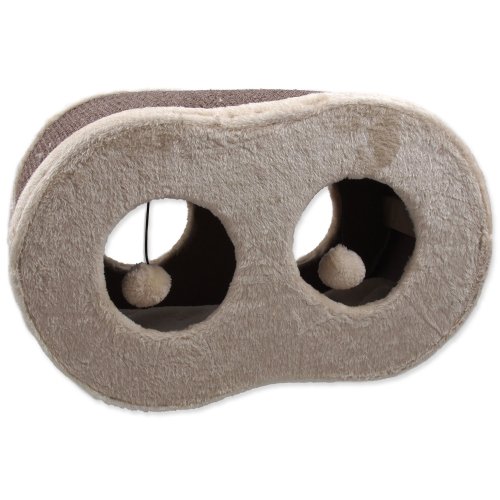 Odpočívadlo z plyše se dvěma otvory a dvěma míčky.