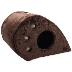 Odpočívadlo s plyšovým potahem. Atraktivní je pro kočky také díky otvoru, ve kterém se kočka může schovat a odpočívat v něm.