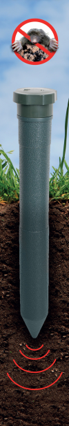 Jednoduchý a účinný odpuzovač. Instalace je jednoduchá, stačí jen zasunout do země, kam vysílá pro tyto živočichy odpuzující vibrace. Lidem ani domácím zvířatům tyto vibrace nijak neškodí.