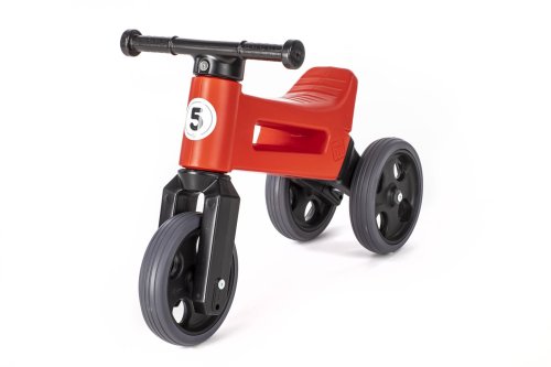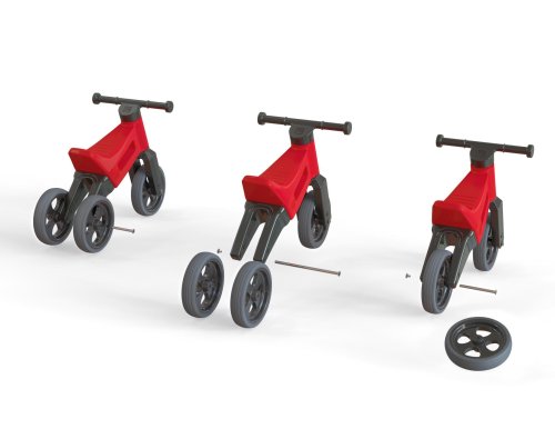 A jedééém! FUNNY WHEELS je originální české odrážedlo, které dokáže růst s vaším dítětem. Vzhledem k tomu, že můžete vyměnit dvě zadní kola za jedno a nastavit jeho výšku, nemusíte kupovat každý rok nové odstrkovadlo. FUNNY WHEELS vám vydrží, dokud nebudete kupovat první kolo. Hlavní výhody FUNNY WHEELS: 2v1 – během pár minut změníte tříkolové odrážedlo na dvoukolové 2 výškové polohy – nastavíte vpředu i vzadu (rozdíl 3 cm) Tiché pneumatiky, které nekloužou na výběr v 6 barvách – zelená, červená, modrá, růžová, oranžová, šedá cool design bezpečné i pro ty nejmenší z odolného a nezávadného plastu, se zahlazenými spoji omyvatelné vlažnou vodou a mýdlovými čisticími prostředky kompletně vyrobené v České republice FUNNY WHEELS roste stejně, jako váš prcek. Ten začne jezdit na malém tříkolovém odrážedle, až se vytáhne, jednoduše FUNNY WHEELS zvednete o 3 cm výš a jede se dál. Až přijde čas trénovat balanc, jednoduše vyměníte dvě zadní kolečka za jedno a dítko se může začít připravovat na jízdu na kole. Jak přesně to funguje, vidíte na videu. Odstrkovadlo je přitom stabilní (ve variantě se třemi koly). Vidlice má omezený rozsah otáčení a řídítka se tak nemohou přetočit. Rukojeti řídítek jsou na konci rozšířené, a tím chrání dětské ruce před poraněním.