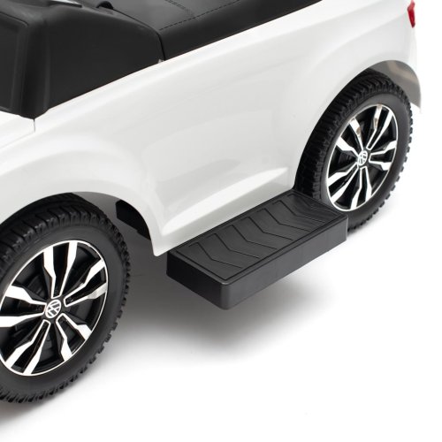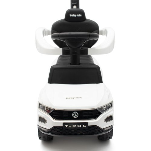 Dětské odrážedlo s vodící tyčí VOLKSWAGEN T-ROC je vyrobeno v licenci koncernu Volkswagen. Váš malý závodník či závodnice se v něm bude cítit jako v opravdovém bouráku. Odrážedlo je vyrobeno s důrazem na každý detail a kvalitu použitých materiálů. Jeho sportovní vzhled upoutá pozornost nejen každého dítěte, ale i rodiče. Odrážedlo pomáhá rozvíjet motorické schopnosti dítěte a zaručí mu spoustu zábavy a legrace. Autíčko má na volantu efektní houkačku a tlačítka s melodiemi. Je určeno jak pro nejmenší děti, které už umí sedět, tak i pro děti, které se už naučily chodit. Odrážedlo má široké a komfortní sedadlo s úložným prostorem, kvalitní plastová kola a pohodlnou a zároveň pevnou vodící tyč s držákem na nápoje, kterou lze odrážedlo řídit. Vodící tyč, opěrky na ruce a podnožky lze sundat a tím dítě využije autíčko jako klasické odrážedlo. Baterie nejsou součástí balení (2x AA 1.5V).