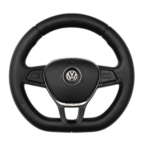 - Tříramenný volant s logem VW, vybavený klaksonem a veselými melodiemi