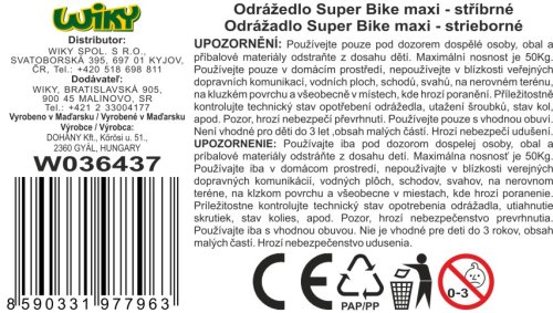 Odrážedlo Super Bike maxi. Stříbrná barva. Délka 60 cm, šířka 28cm, výška 48cm. 3 kola. Max nosnost 50 Kg.
