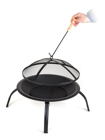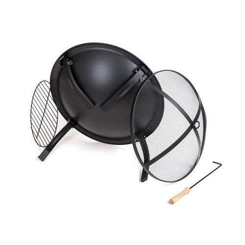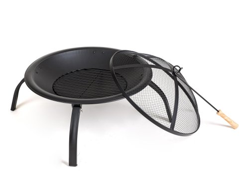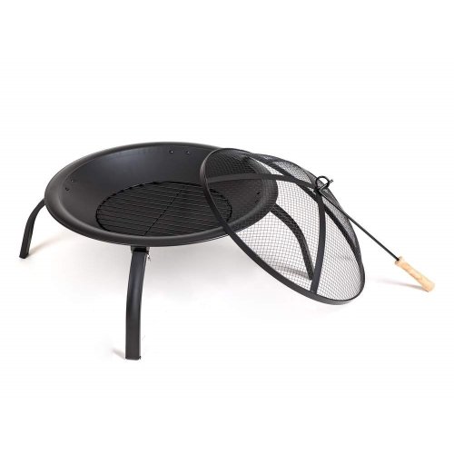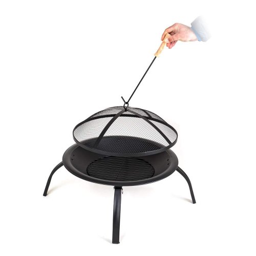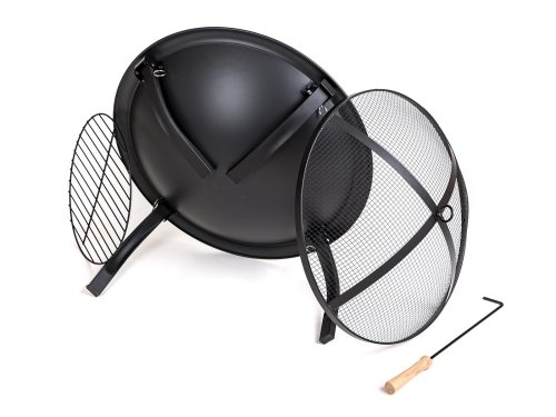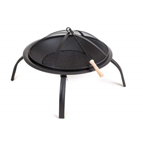 Přenosné kovové zahradní ohniště, plochého typu, se zabudovaným roštem. S černou povrchovou úpravou odolávající vysokým teplotám. Ohniště je vybaveno síťovým poklopem proti odlétání drobných uhlíků. Ohniště je usazeno na snadno složitelných nožkách, umožňujících úsporné skladování.