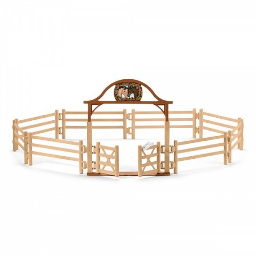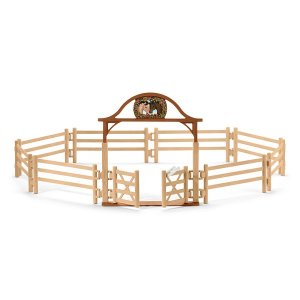 Kdykoli dorazí do Lakeside noví koně nebo poníci, nejdříve se přivedou do ohrady. Ohrada pro koně se vstupní branou je skvělý doplněk světa Horse Club. Ploty se dají spojovat i s ostatními ploty dalších produktů (Výběh pro koně, Stáje). Hlavní brána je otevírací. Všechny figurky Schleich jsou modelovány s důrazem na detaily, ručně malované opatrně a poskytují pedagogickou hodnotu. Obsahuje: 8x plotová část, 1x vstupní brána, 1x samolepka. Rozměr balení: 19 x 11,5 x 6,8 cm. Nevhodné pro děti do 3 let. Doporučený věk: 5-12.
