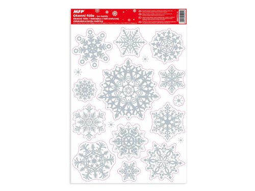 Vánoční okenní fólie s motivem sněhových bílých vloček s glitrem. Vyzdobte si okno těmito krásnými samolepkami. Vytvoří Vám kouzelnou vánoční atmosféru u Vás doma. Jsou vhodné na jakékoli hladké plochy, například sklo, výlohy, zrcadla nebo kachličky. Čisté, bez lepidla a opakovaně použitelné.1. Sloupněte z podložky obrázek a umístěte na čisté, případně navlhčené sklo stranou, která byla na podložce. 2. Obrázek elektrostaticky přilne.3. Folie se snadno sloupne a dá se přemístit. Nelze vybrat druh, dodáváme dle skladové dostupnosti.