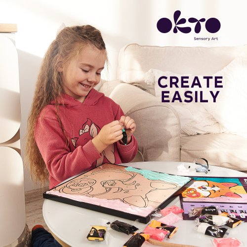 OKTO Liška výtvarná sada. Samotvrdnoucí hmota (air clay), malování prsty. Velikost plátna 29x29 cm. Obsah balení - plátno, obrázkový návod, tvarovací nástroje, samotvrdnoucí hmota.