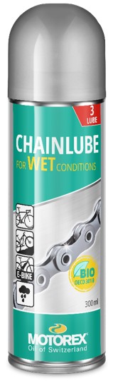 Biolocky rozložitelné, plně syntetické mazivo. Díky svým aditivům MOTOREX CHAINLUBE FOR WET CONDITIONS proniká rychle a hluboko, poskytuje optimální mazání a vynikající ochranu proti korozi. Speciálně vyvinutý pro jízdní podmínky, které vyžadují dlouhodobou adhezi řetězu z maziva. Mazivo je vysoce vodoodpudivé, a proto je ideální ve vlhkých a blátivých podmínkách.