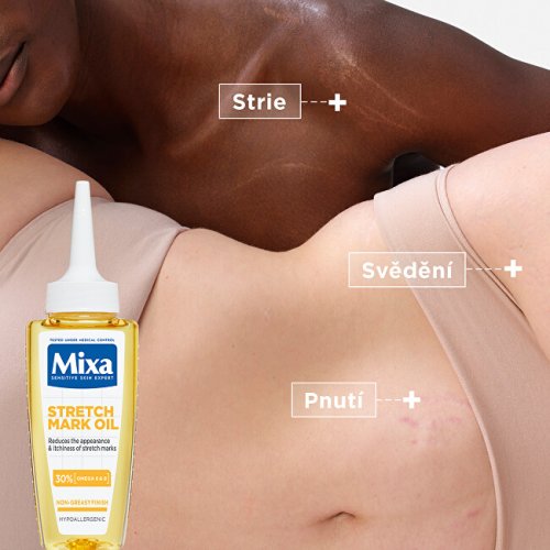 Strie vznikají prudkým růstem, či nárůstem hmotnosti. Vyžadují vysoce hydratující péči. Olej proti striím s aktivními látkami je vhodný i pro citlivou pokožku.