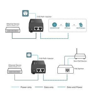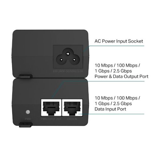 • 1 10 Mbps / 100 Mbps / 1 Gbps / 2,5 Gbps RJ45 napájení + port datového výstupu