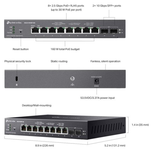 Omada inteligentný switch s 8 portami 2.5GBASE-T podporujúcimi PoE+ a 2 portami 10GE SFP+