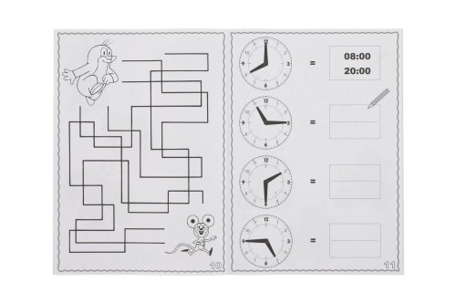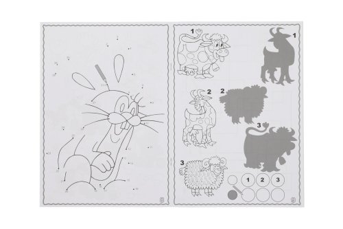 Omalovánky A4 s motivem Krtka. Obálka + 16 vnitřních stran, z toho 8 barevných předloh a 8 odpovídajících kontur.