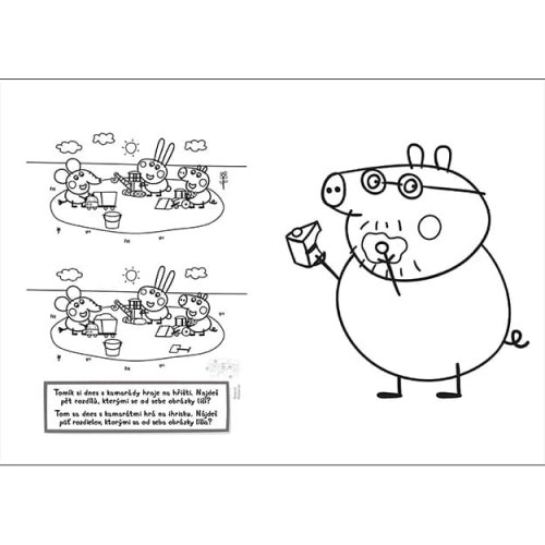 Omalovánky obsahují 16 černobílých stran s obrázky k vybarvení a oblíbenými aktivitami.