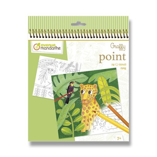Omalovánky Avenue Mandarine Graffy Point s motivy zvířátek z džungle určené k vybarvení pomocí spojování čísel. Stačí spojovat čísla jedno po druhém až se objeví kresba a potom začít vybarvovat. Omalovánky pro 2 věkové skupiny ve 2 úrovních obtížnosti. Omalovánky obsahují 24 listů, 12 motivů po 2 ks. Gramáž 250 g. Lze použít na všechny techniky - pastelky, fixy, akvarel atd. Vhodné pro děti od 5 let nebo 7 let,,Rozměr balení: 20 x 25,5 cm.