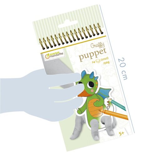 Omalovánky Avenue Mandarine Graffy Puppet s různými motivy pohádkových zvířat. Omalovánky předem připravené a upravené pro následné použití jako prstové loutky, stačí je vybarvit a hrát si. Omalovánky obsahují 24 listů, 12 motivů po 2 ks, kroužková vazba. Lze použít na techniky: pastelky, fixy, akvarel atd. Gramáž 250 g. Vhodné pro děti již od 5 let,,Rozměry 10 x 20 cm
