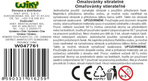 Omalovánky stíratelné. Rozměry 28x21,5x1 cm. 8 obrázků.