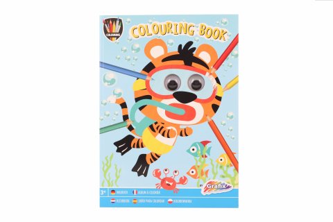Omalovánky s motivem veselých zvířátek.Obsahuje hýbací očička. Rozměr 27x19,5 cm. Věk 3+