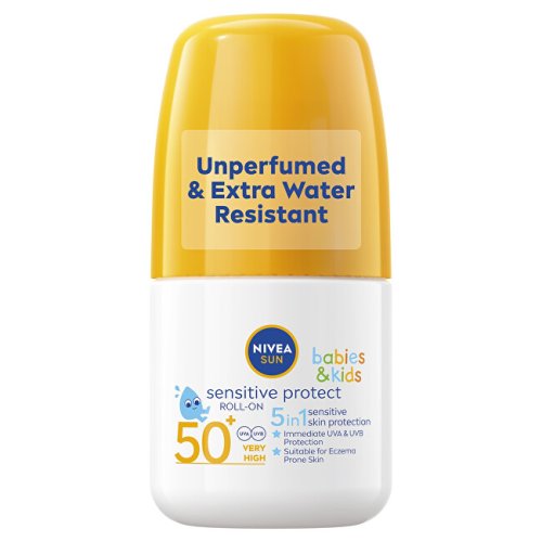 Dětské mléko na opalování v kuličce Sensitive OF 50+ Letní dovolená s dětmi volá. Přibalte jim do batůžku ochranu před sluníčkem, tedy čepici a voděodolný opalovací krém: NIVEA dětské mléko v kuličce Sensitive OF 50+. Letní hory nebo dovolená u moře je s dětmi vždy velká výzva. Extra voděodolné mléko spolehlivě ochrání i toho největšího plaváčka. A protože stejně jako on milujeme oceány: Opalovací mléko neobsahuje mikroplasty ani škodlivé UV filtry a jeho obal je 100% recyklovatelný. Složení jsme navíc vyvinuli spolu s pediatry speciálně pro citlivou dětskou pokožku. Je zcela bez parfemace a vhodné pro školáka i pro miminko už od 6 měsíců. S kuličkovým roll-onem natřete pohodlně každého malého neposedu: NIVEA Dětské mléko na opalování v kuličce Sensitive OF 50+. • Extra voděodolné mléko (nejen) na vodní hrátky.• Spolehlivá, velmi vysoká ochrana v podobě OF 50+.• Složení je speciálně vyvinuté pro dětskou pokožku již od 6 měsíců. • Bez parfému.• Rychlá a přesná aplikace díky kuličkovému systému.