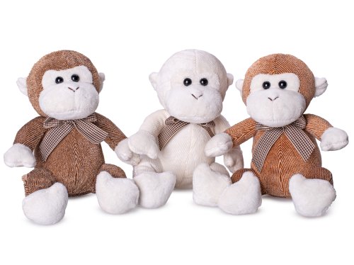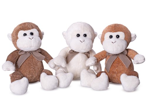 Opice plyšová 15 cm sedící s mašlí - mix barev (béžová, světle hnědá, tmavě hnědá)
