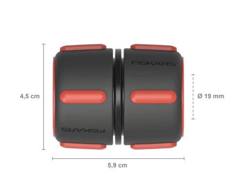 Rychlá oprava poškozených hadic 3/4 coulu nebo jejich prodloužení. Poškozenou část vyřízněte a oba konce hadice spojte. Dotykové body SoftGrip zajišťují bezpečnou manipulaci, i když jsou mokré. Pohodlně se drží, dokonce i za chladného počasí, ve srovnání s kovovými díly pro zavlažování. Barevné označení pro snadné připojení k hadicím Fiskars. Univerzální připojení je kompatibilní s ostatními značkami. Výška: 11,6 cm, délka: 6,8 cm, šířka: 4,5 cm. Hmotnost: 0,03 kg.