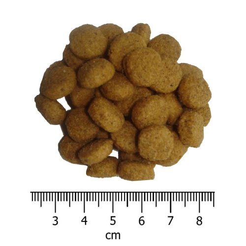 Analytické složky: Hrubý protein 33 %, hrubý olej a tuky 10 %, mastné kyseliny omega 6: 3 %, mastné kyseliny omega 3: 0,3 %, hrubá vláknina 5,3 %, celková dietní vláknina 14 %, hrubý popel 7,5 %, vápník 1,45 %, fosfor 1,45 %, metabolizovatelná energie 353 kcal/100 g.