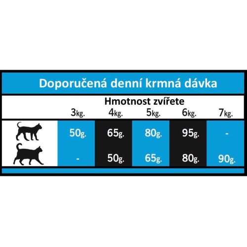 Snadno stravitelné sacharidy, pro zajištění kvalitní srsti, kůže a podporu trávení. Obsah omega 3 a 6 esenciálních mastných kyselin pro správné fungování mozku a optimální kondici kardiovaskulárního systému. Obsah zinku napomáhá udržovat zdravou kůži a lesklou srst. FOS + MOS s prebiotickými účinky přispívá ke zdraví trávícího traktu. L-karnitin napomáhá efektivnímu metabolismu tuků, podporuje spalování tukových zásob a udržení svalové hmoty, což je ideální pro kočky se sklonem k nadváze nebo nižší aktivitou.