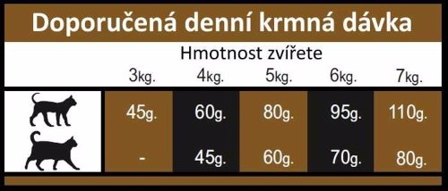 Snadno stravitelné sacharidy, pro zajištění kvalitní srsti, kůže a podporu trávení. Obsah omega 3 a 6 esenciálních mastných kyselin pro správné fungování mozku a optimální kondici kardiovaskulárního systému . Obsah zinku napomáhá udržovat zdravou kůži a lesklou srst . FOS + MOS s prebiotickými účinky prospěšné pro trávící soustavu. Optimální poměr vápníku a fosforu pro silné a zdravé zuby.