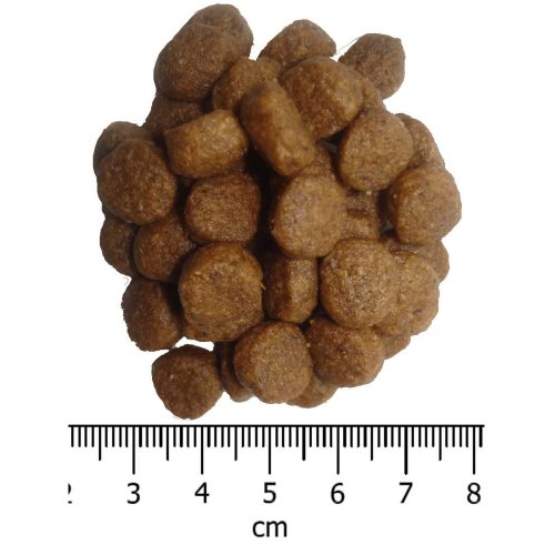Analytické složky: Hrubý protein 28,00 %, hrubý tuk 17,00 %, EPA + DHA 400 mg/kg, omega-3 mastné kyseliny 0,45 %, omega-6 mastné kyseliny 3,35 %, hrubá vláknina 3,00 %, hrubý popel 7,50 %, vápník 1,30 %, fosfor 1,10 %.