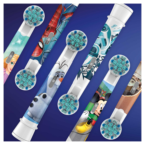 Náhradní kartáčkové hlavice k elektrickému zubnímu kartáčku Oral-B Stages Power Kids s Disney postavičkami jsou přizpůsobeny menším dětským ústům a mají design inspirovaný špičkovými čisticími účinky profesionálních nástrojů zubních lékařů. Vlákna i celková velikost kartáčku jsou ideální pro malé dětské ruce a ústa a všechny kartáčkové hlavice zdobí Disney postavičky, které si vaše děti zamilují. Každé balení obsahuje 4 náhradní kartáčkové hlavice Oral-B Stages Power Kids.