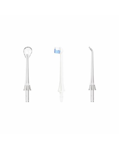 V balení výrobku najdete dvě standardní trysky na čištění zubů, dvě trysky na čištění jazyka a jednu trysku se zubním kartáčkem. Ústní sprchu tak můžete používat se svou láskou, základna zůstává stejná, pouze vyměníte rukojeti trysek. Po 6 měsících používání doporučujeme trysky vyměnit.