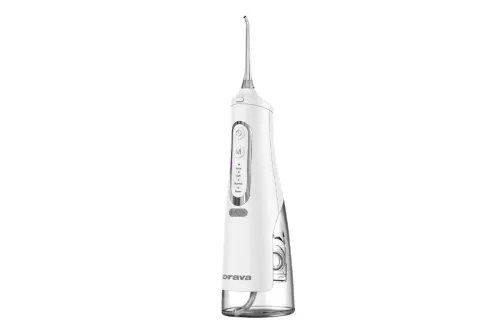 zubů, dásní a jazyka pro dospělé i dospívající. Tlak vody čistí mezizubní prostory a linii dásní. Odstraňuje plak i v místech, kam je přístup zubního kartáčku obtížný, promazává a zvětšuje dásně. Je vhodný i pro čištění oteklých, zarudlých a bolestivých dásní. Má ergonomicky tvarovanou rukojeť s protiskluzovou úpravou pro pohodlné používání. Je vodotěsný s krytím IPX7 a elektricky bezpečný pro každodenní použití v koupelně.