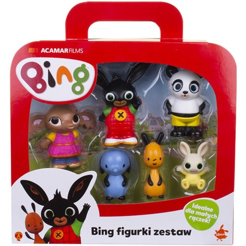 Sada 6 postav z populární pohádky králíček Bing Sada obsahuje všechny oblíbené postavičky ze seriálu: Bing, Flop, Sula, Amma, Pando a Charlie Díky těmto figurkám z vysoce kvalitního plastu si vaše dítě bude moci zahrát své oblíbené pohádkové scény Vhodné pro děti od 18 měsíců