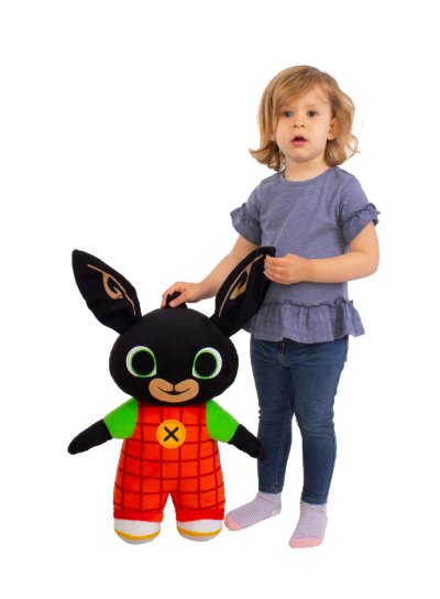Hlavní postava animovaného seriálu v jumbo verzi. Králíček Bing se jistě rychle stane jedním z nejoblíbenějších mazlíčků vašeho dítěte. Tento plyšový králík je díky měkkému, na dotek příjemnému materiálu a vyšívané tváři bezpečný i pro nejmenší děti. Bude to skutečná ozdoba každého dětského pokoje. Králík měří 65 cm i s ušima, bez uší 50 cm. Vhodné pro děti od 10 měsíců.