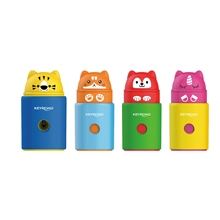 Orezávátko s jedním otvorem a nádobkou na odpad ve veselém zvírecím designu Vhodné pro tužky a pastelky s prumerem 8 mm Praktické tlacítko pro otevírání a zavírání, aktivované stisknutím na hlavicce …