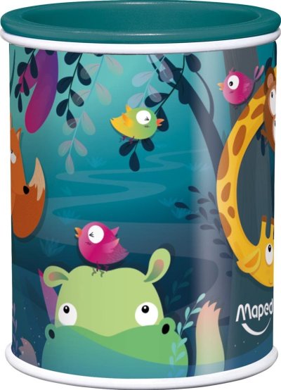 Kovové ořezávátko Can Jungle Fever v atraktivním designu s motivy zvířátek z džungle.