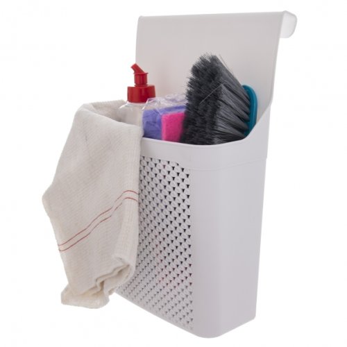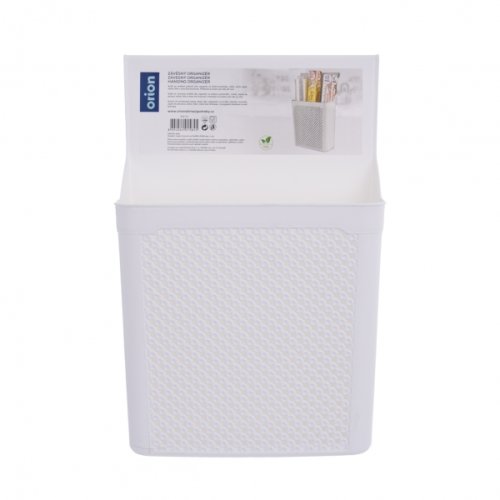 Plastový košík na zavěšení slouží jako organizér. Vhodný např. na čistící prostředky, sáčky, pečící papír, alobal, fólie a jiné drobnosti. Rozměr 24 x 9/12 x 35 cm, vhodný na tloušťku dvířek max. 2 cm. EAN 8694064015845