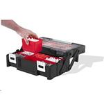 Konzolový systém udržuje všechny dílky v perfektním pořádku. Zároveň však nezvětšuje rozměry organizéru, který zůstává kompaktní a přehledný.