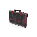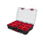 Skládá se ze 2 oddílů, do kterých umístíte drobné součástky, doplňky a jiné řemeslné potřeby. Přihrádky se dají vyjmout, čímž zvětšíte úložný prostor. Poté snadno do boxu uložíte i větší nářadí. Kovové spony zajistí pevné uzavření víka. Obsah organizéru se vám tedy nevysype a zůstane v bezpečí. Rukojeť vám navíc zjednoduší přenášení boxu.