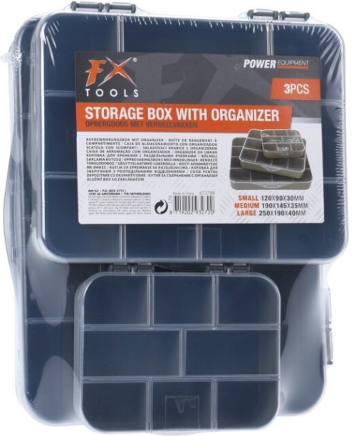 - sada 3 různě velkých organizérů na šroubky a součástky- pečlivě uschované šroubky, matice, vruty i další drobné náčiní máte vždy po ruce- organizéry jsou vhodné do každé dílny i garáže- v každém boxu …