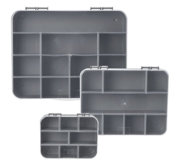 sada 3 různě velkých organizérů na šroubky a součástky- pečlivě uschované šroubky, matice, vruty i další drobné náčiní máte vždy po ruce- organizéry jsou vhodné do každé dílny i garáže- v každém boxu je hned několik přihrádek- sada obsahuje 3 velikosti:- malý 12 x 9 x 3 cm- střední 19 x 14,5 x 3,5 cm- velký 25 x 19 x 4 cm- barva: šedá / transparentní- značka: Excellent Houseware