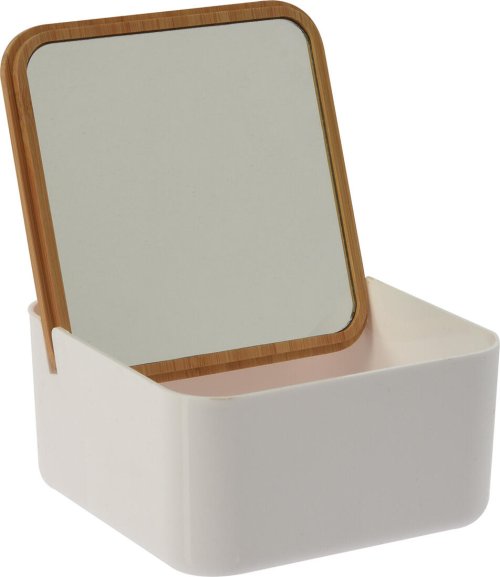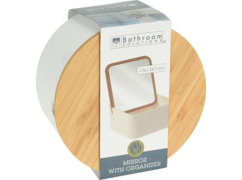 Organizér se zrcátkem 13 cm, PH/bambus, hranatý, kulatý mix.