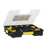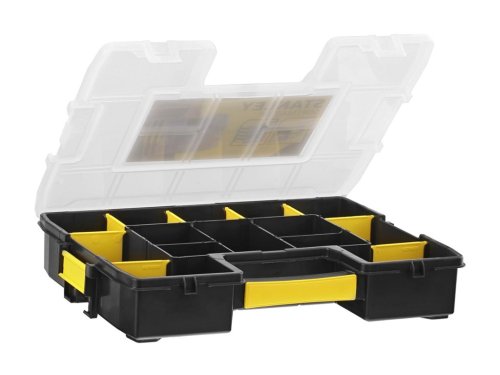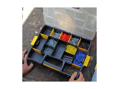 Organizér Stanley Sortmaster Junior využijete pro uskladnění pracovních pomůcek. Uschovejte kladiva, úhlové nářadí, měřící pásky a další drobné díly. Uspořádáte je do jednotlivých přihrádek, abyste je snadno našli a měli je po ruce. 8 odnímatelných přepážek vám umožní přestavět si organizér dle své potřeby.