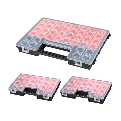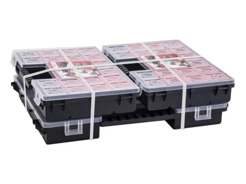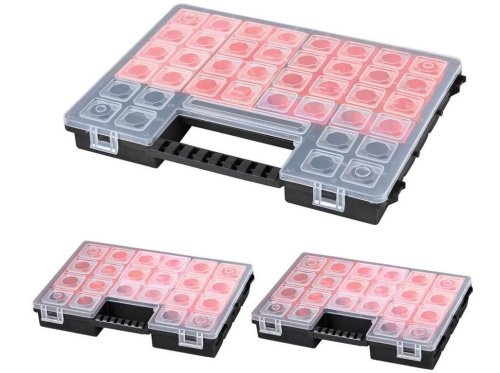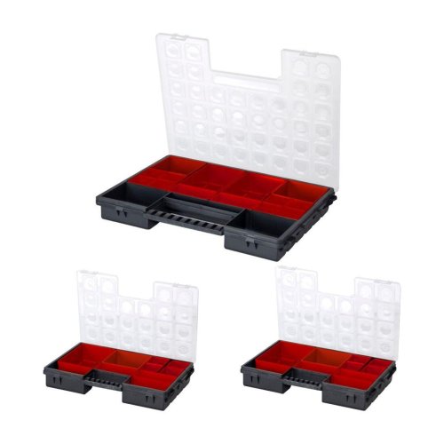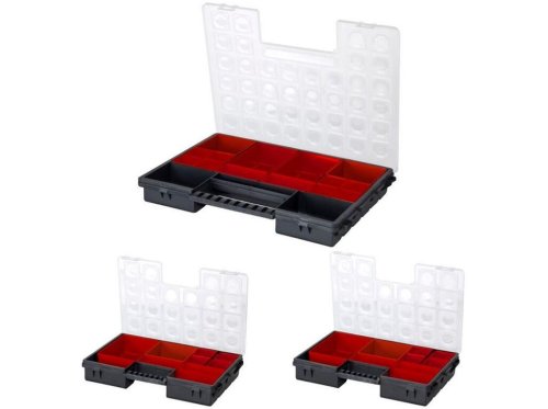 Set se skládá ze 2 organizérů C300 a 1 organizéru C400. Transparentní víko, uvnitř přihrádky různých velikostí.